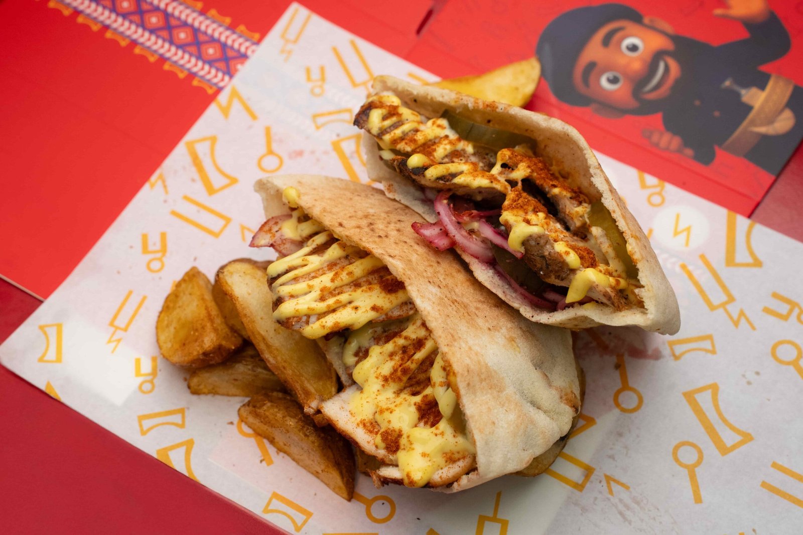 مظبي على الطريقة الشامية بخبز بيتا ناعم، مع صوص الزبادي والثوم ولمسة من السماق.