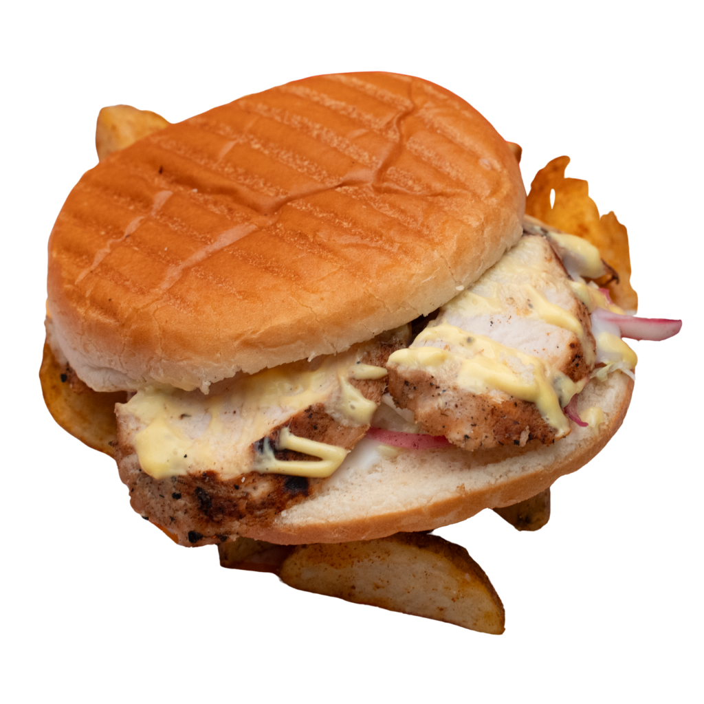 قطعة لحم مظبي فاخرة داخل خبز كايزر ألماني طري، مزينة بخس وصوص المظبي السرّي.